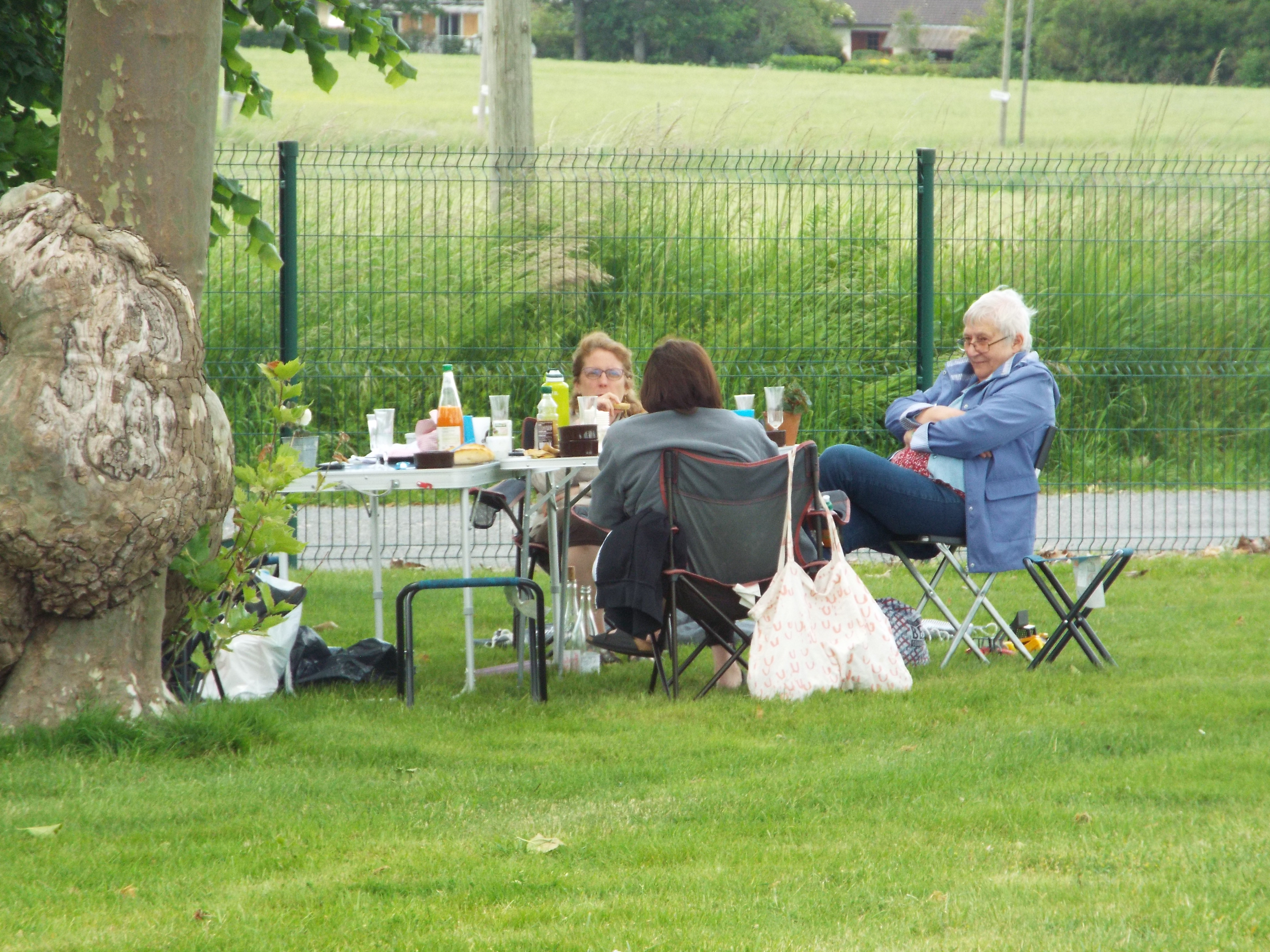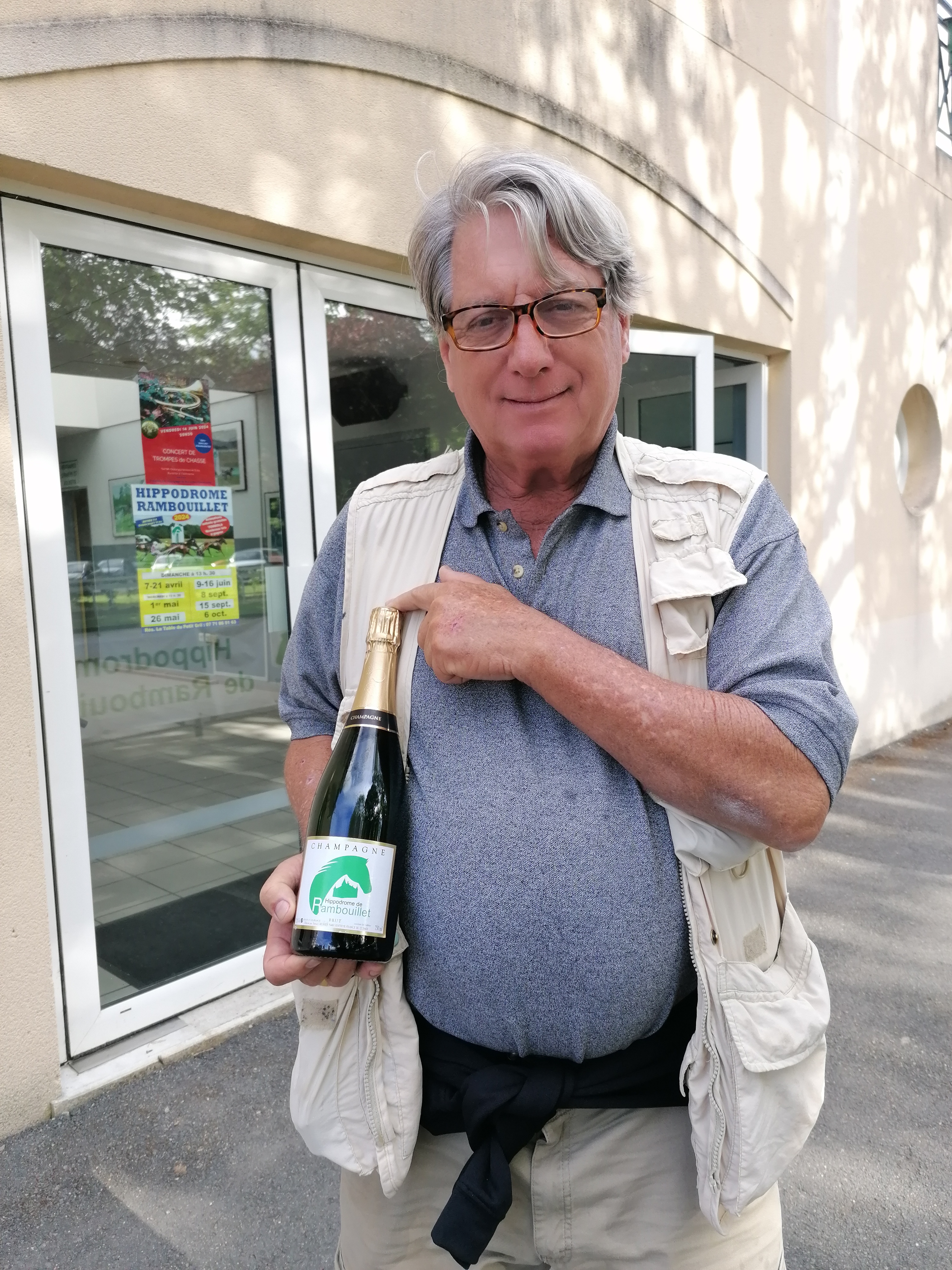 The next day, the 23rd, we did not do much, but we did have a nice hike in the Domeniale Forest of Senonches. The 24th we went to the market at Senonches. This is a twice per week, open air, farmers market in the center of town. Many European cities have this sort of thing. Very enjoyable. Aftewards we went Coudreceau, to vist Yvette, Emmanuelles mother. She is always charming. On the 25th, we had a dinner with some of her friends in Coudreceau. We started with aperatifs of course, little snacks and champagne. This was followed by asparagus. The entree was a roast beef and potatoes with cream and cheese (gratin dauphinois). It went well with a nice Chateauneuf du Pape. Cheeses followed including, Camembert, fromage du chevre, Emmental, and Comte. Dessert was a cake called a tropezienne, a sweet brioche 10 inches across with a layer of sweet cream in the middle. That brings me up to today when we had our first real outing. A day at the races at the Hippodrome of Rambouillet. |