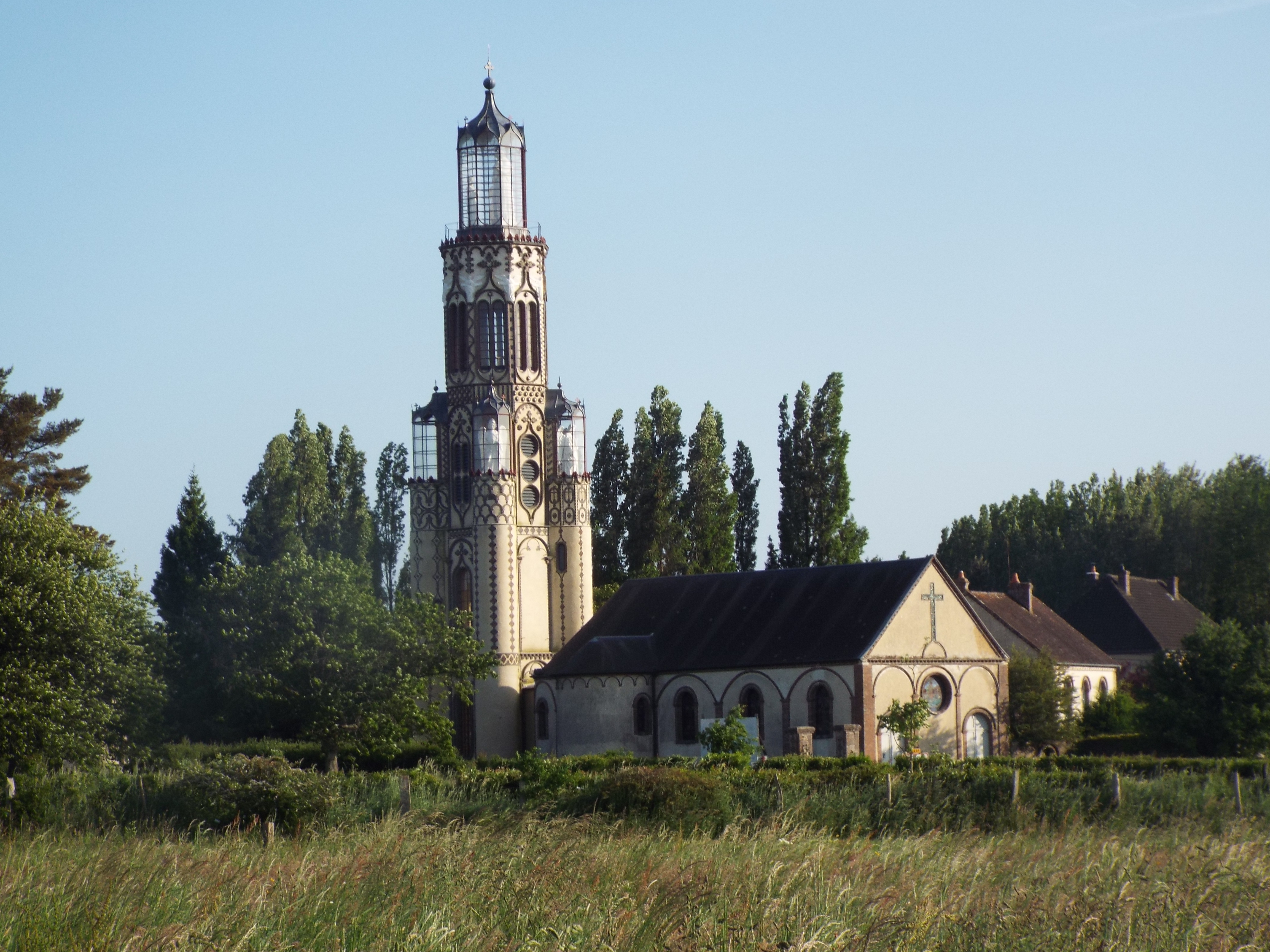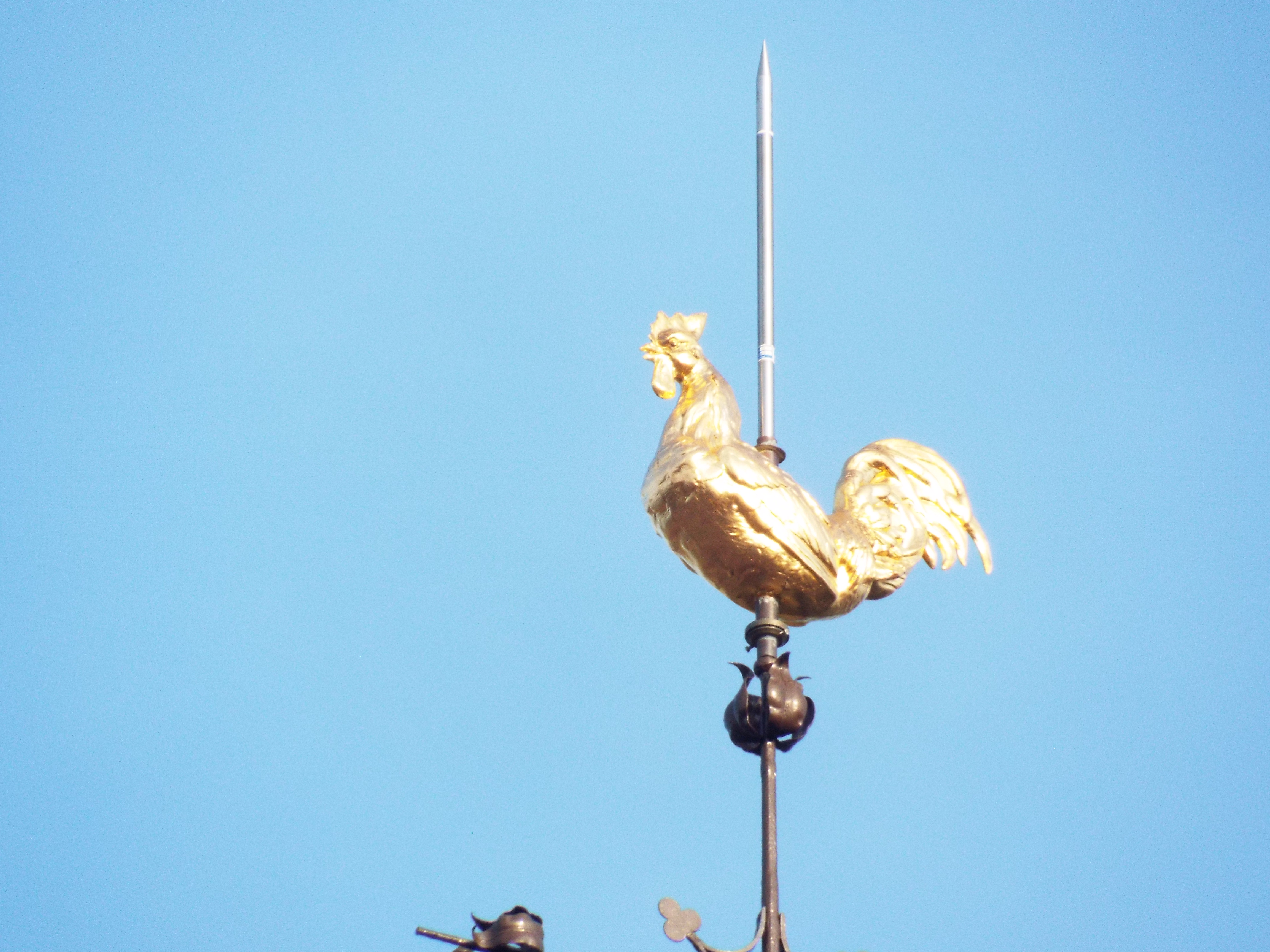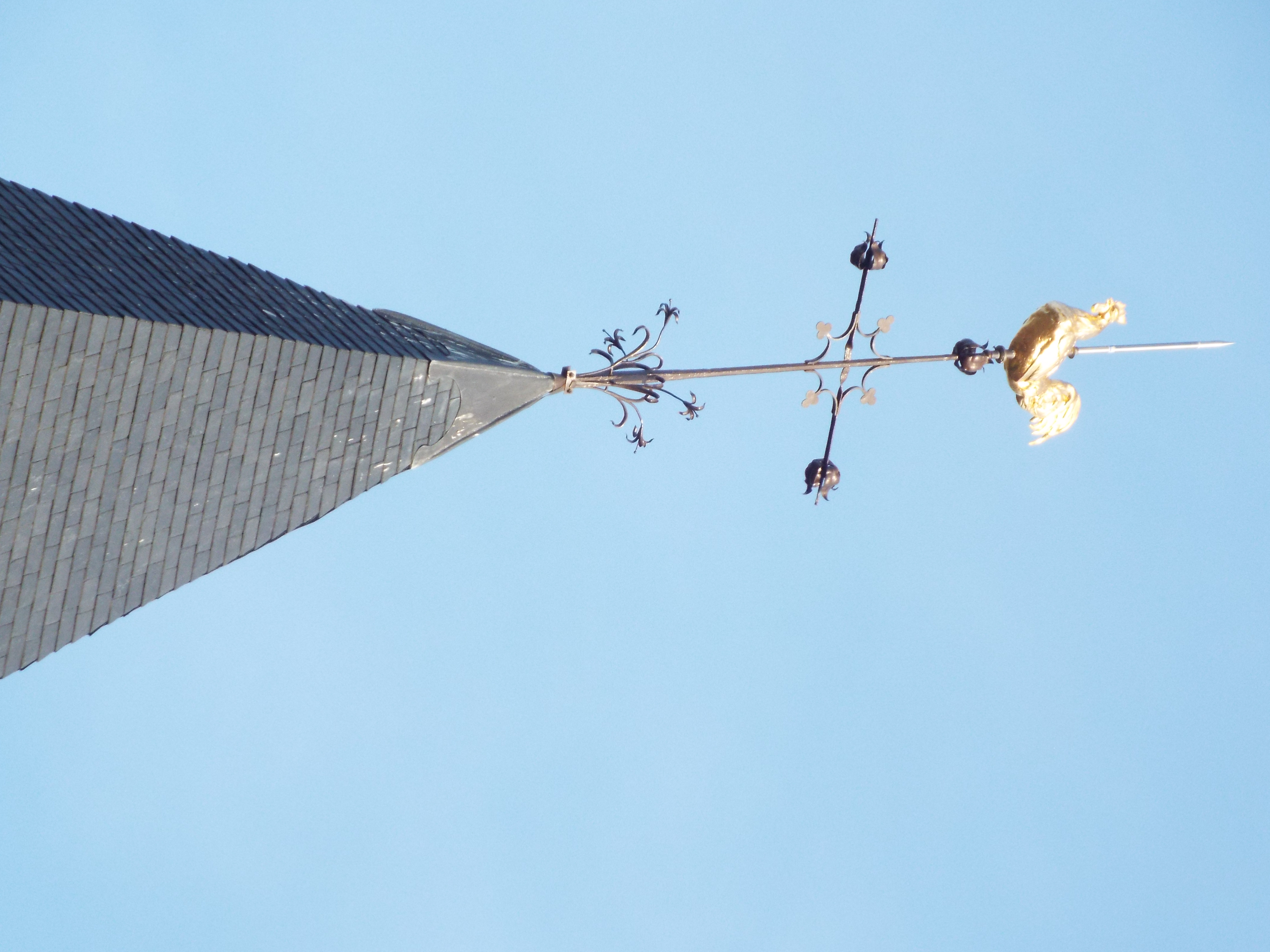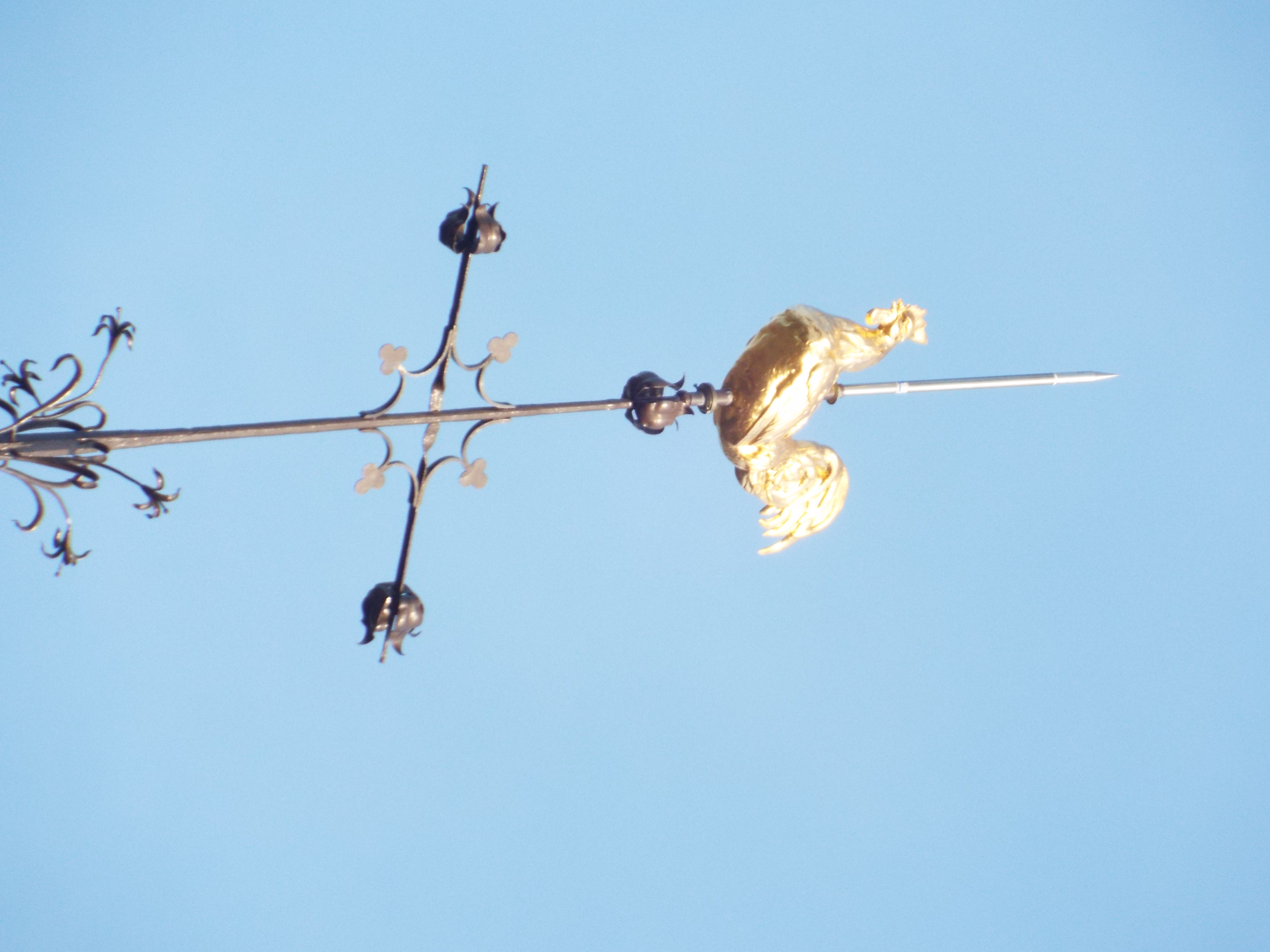 on top of the steeple is one I see on almost all the churches of France: The Cross and Cock.