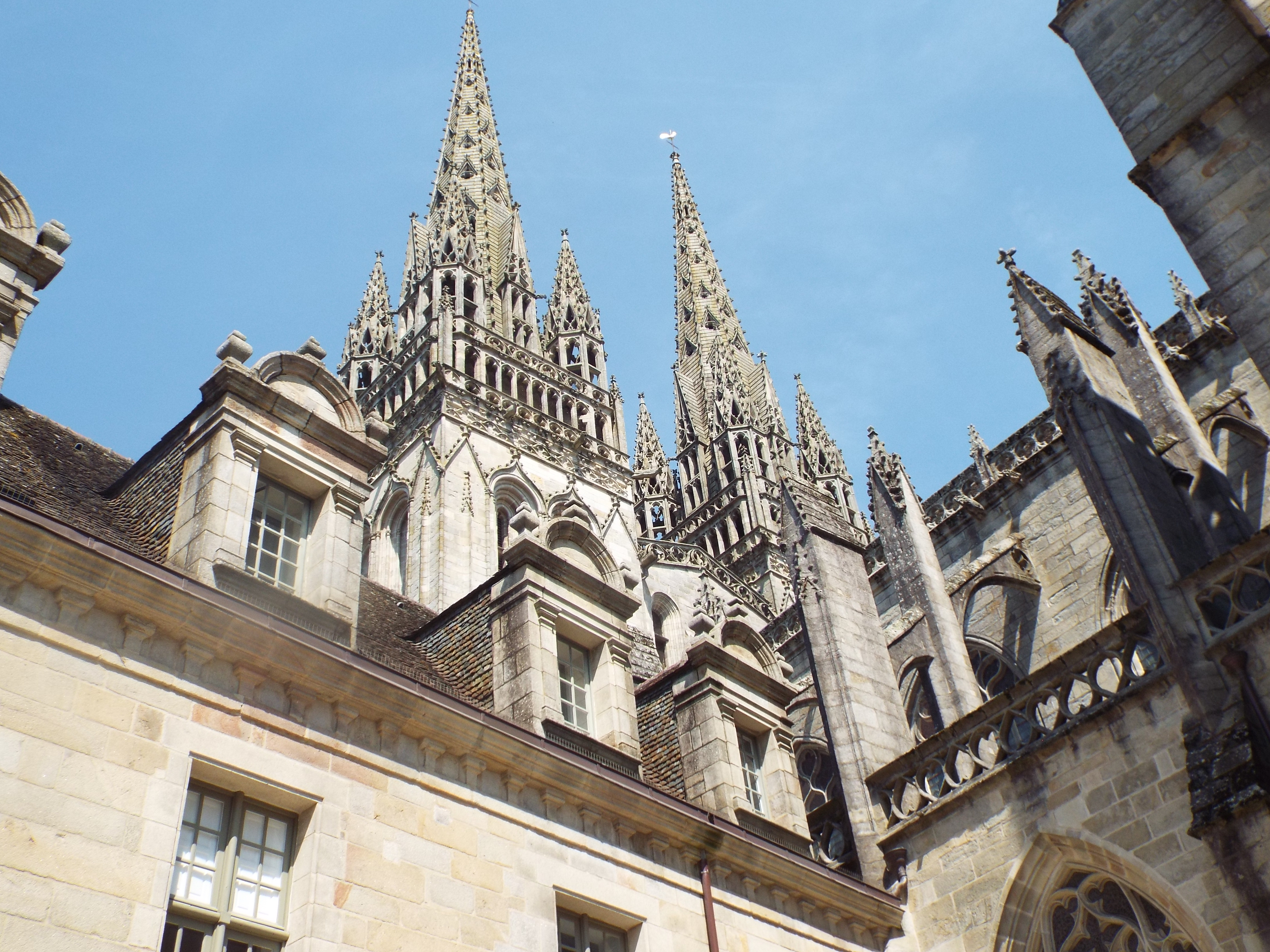 | There is a magnificent gothic cathedral in Quimper. It was closed that day so no interior shots. This was a little odd since cathedrals are usually open, but closed it was. Also i was not able to get a shot of the whole since it was too near many buildings. But here a few partials to give an idea of the marvelous stone work. |