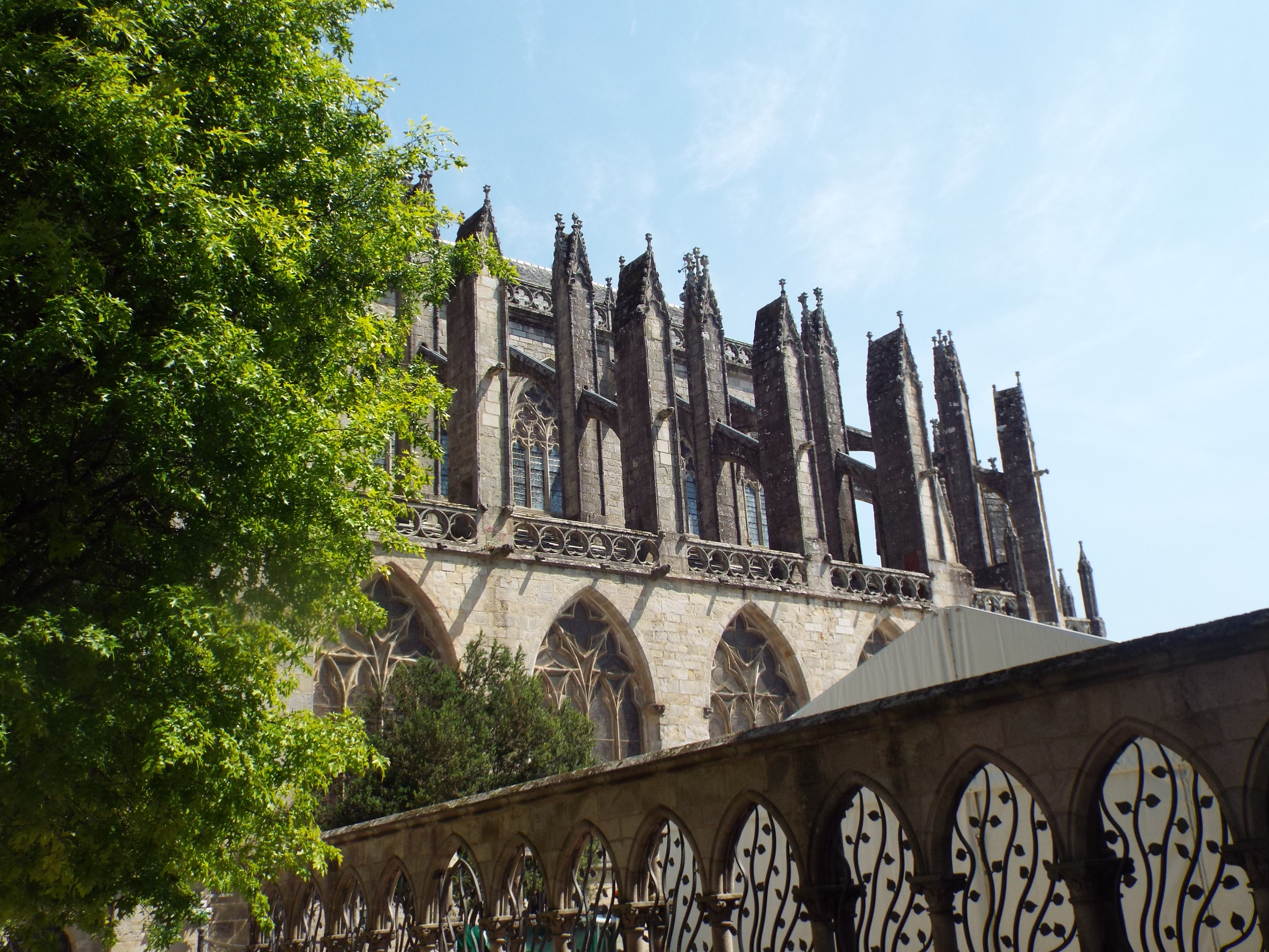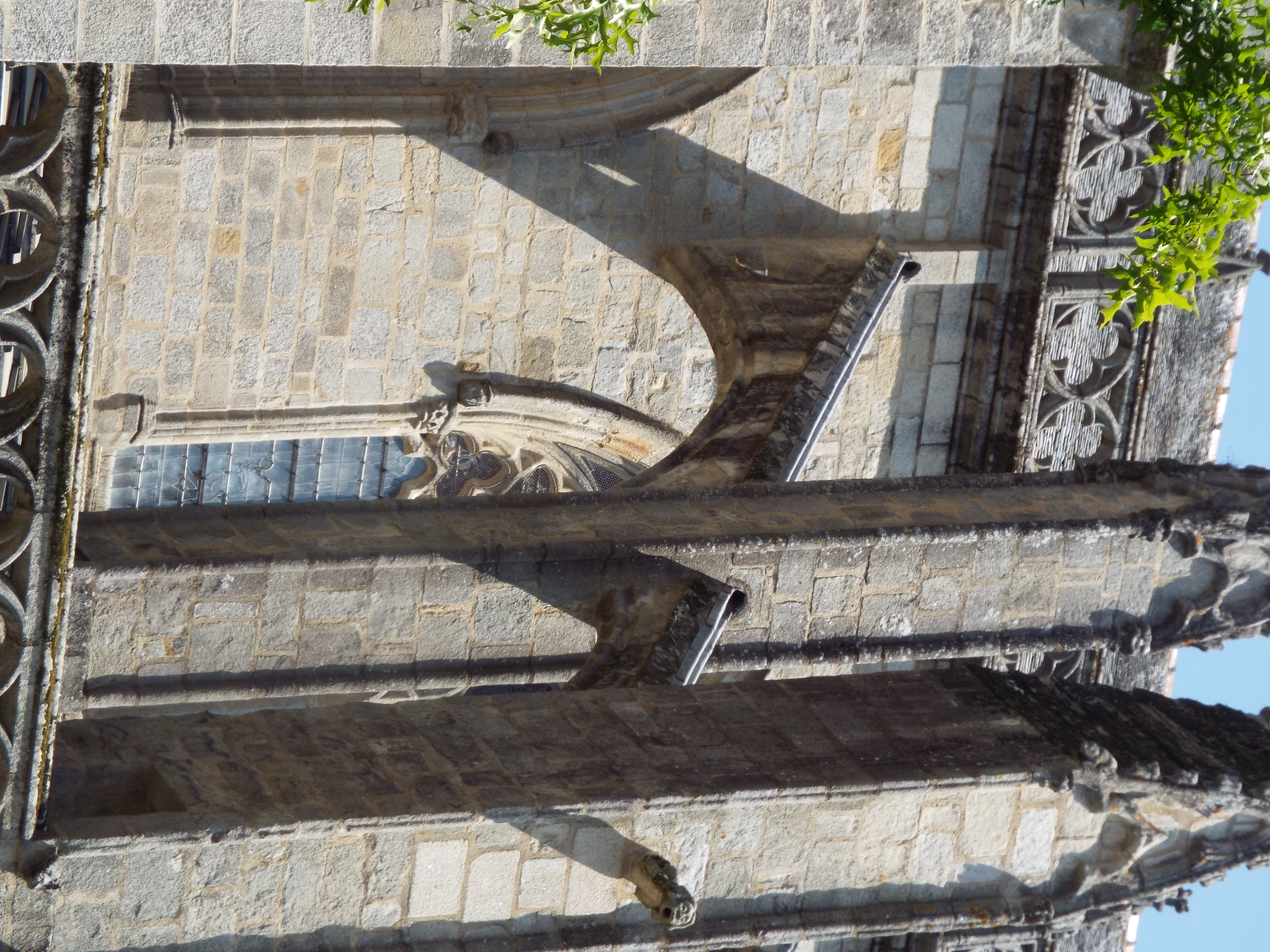The two flying buttresses offer insight into how long it took to build this cathedral. I do not know how long it took to build this one, but gothic cathedrals often two centuries of more to build. Several generations of stone masons might devote their lives to work on the building. The National Cathedral in Washington DC took a century to build, even using modern machinery and methods. This is why they sometimes have architectual differences between the earlier and latter parts of the building. Two centuries is a long time to ponder building design. |