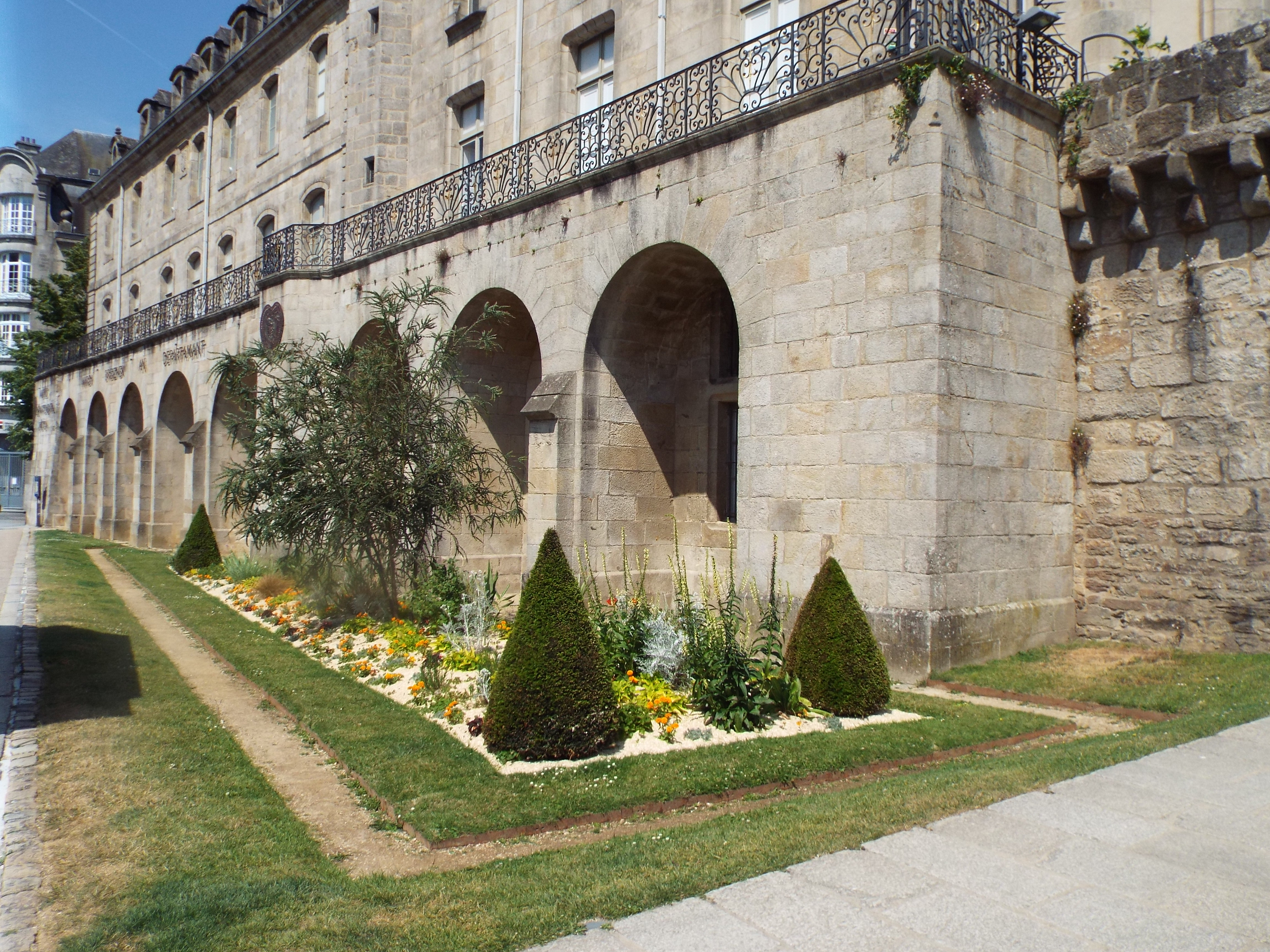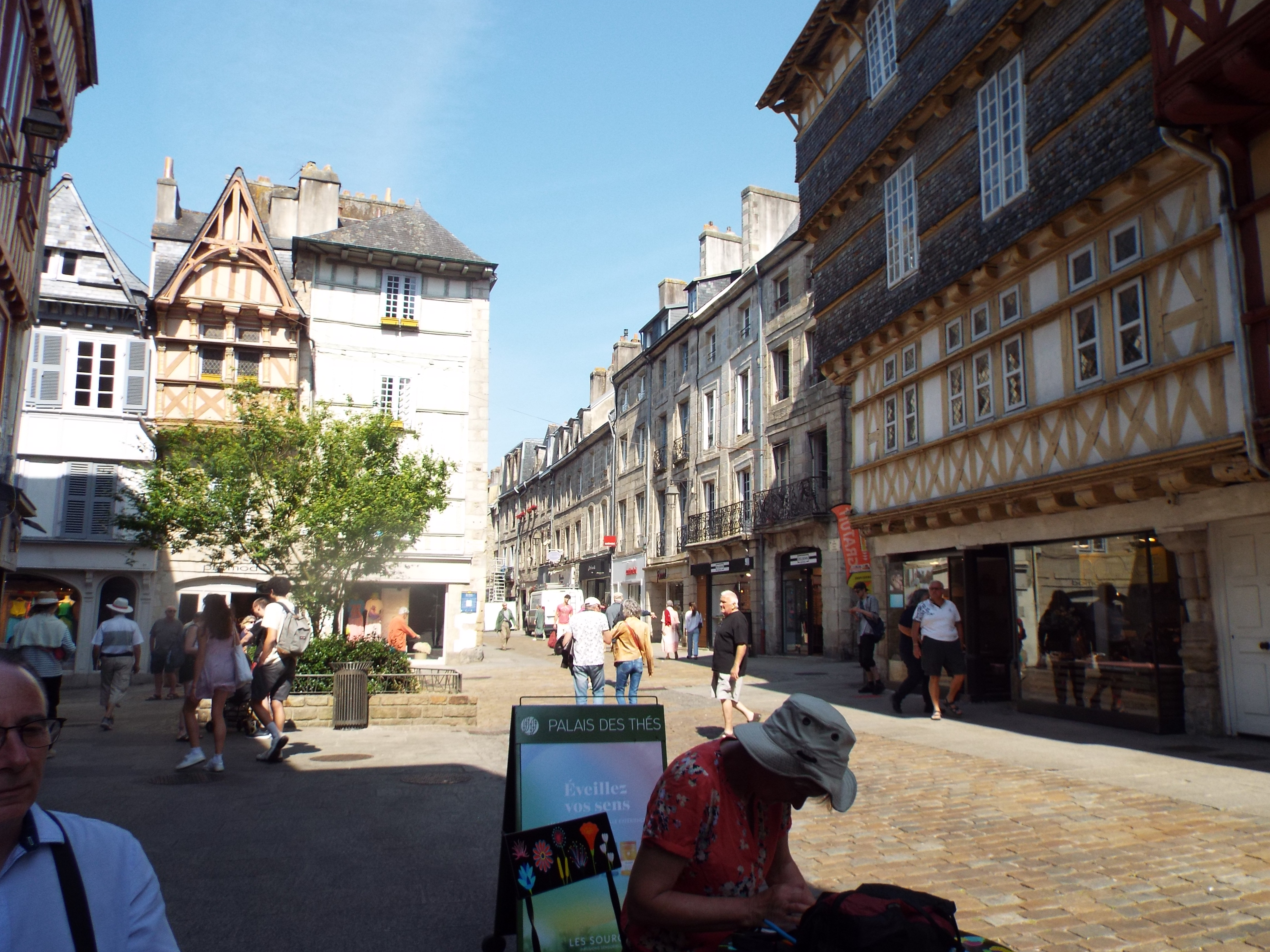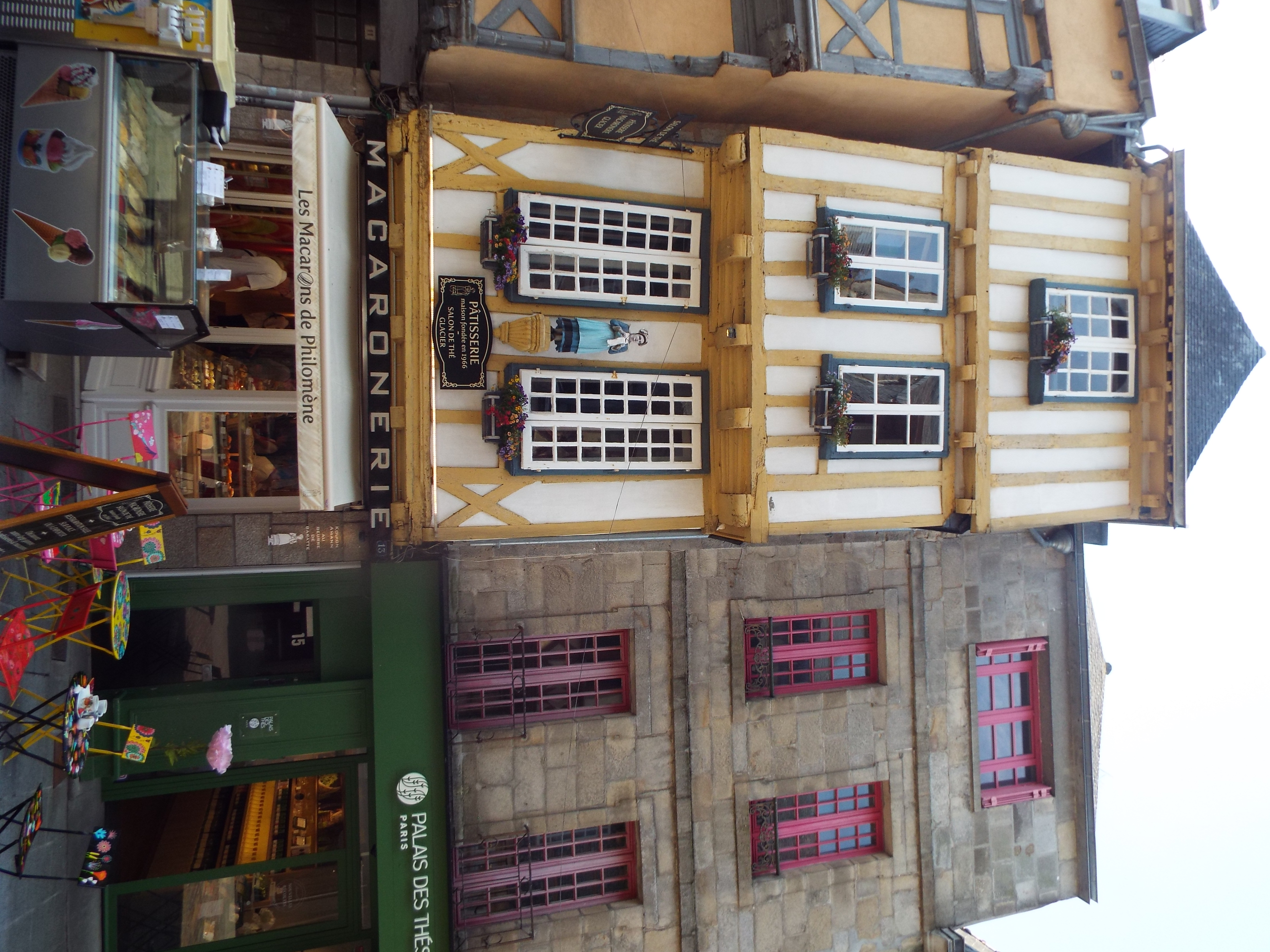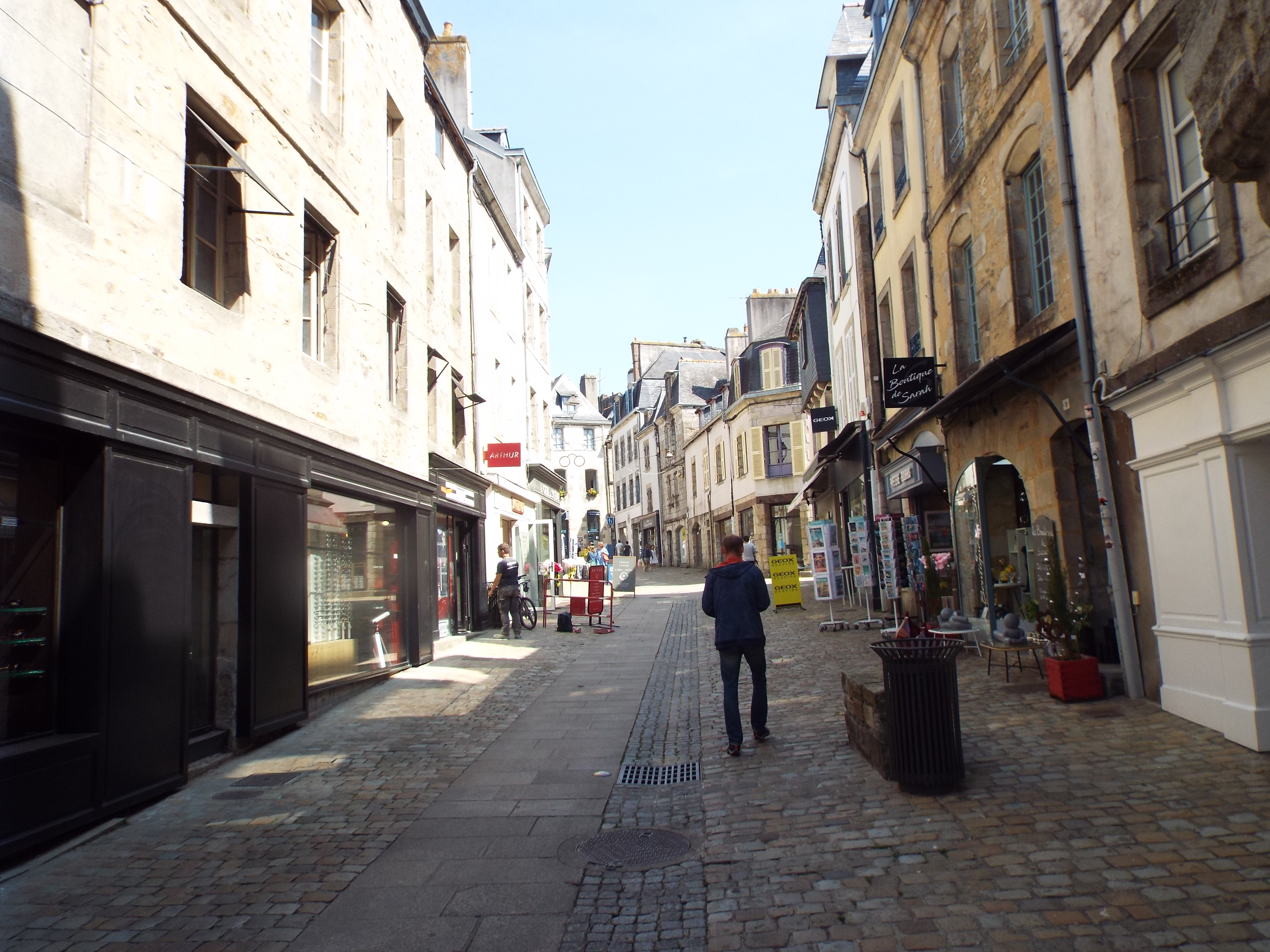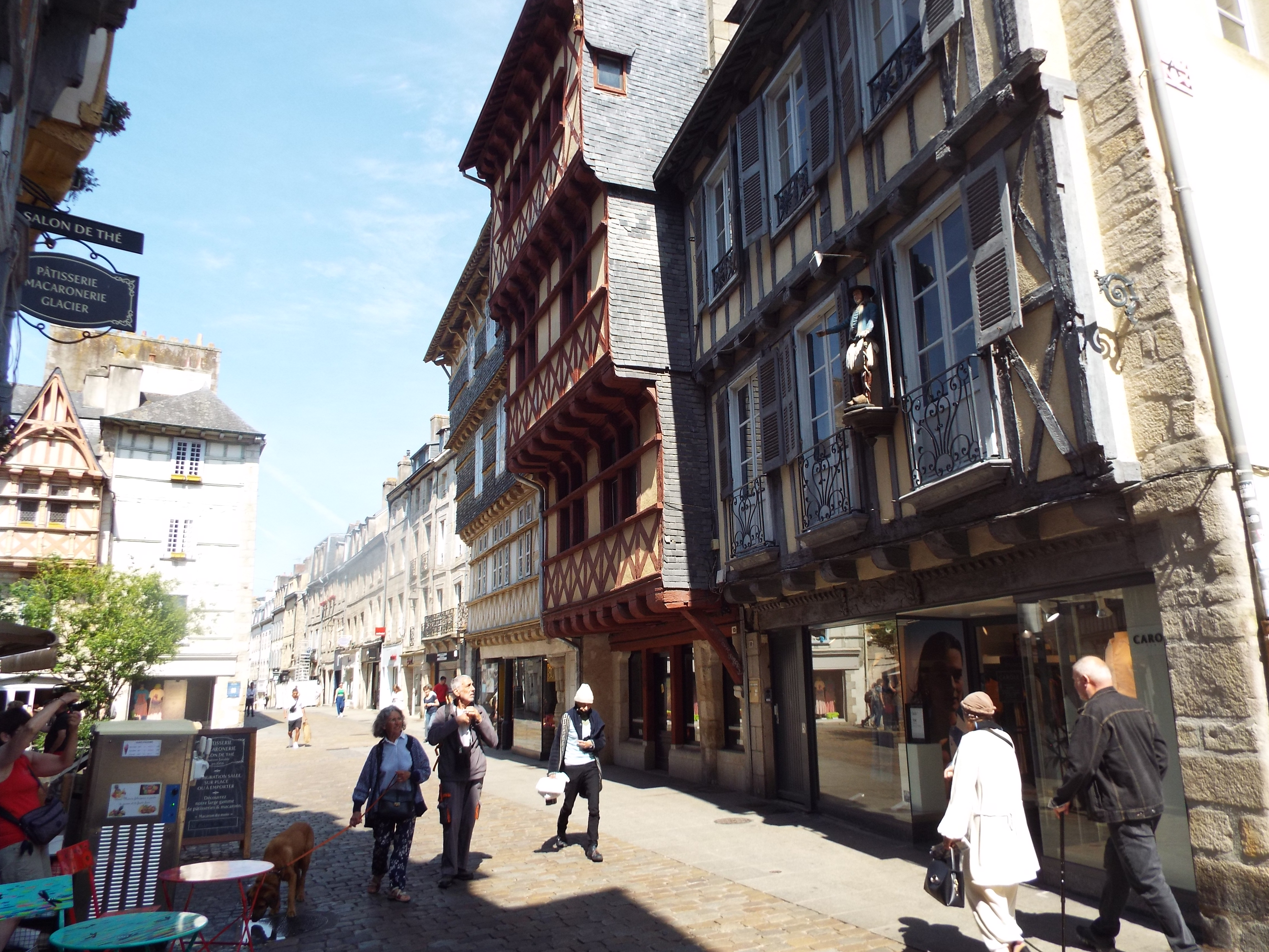 western tip of Brittany, hence its name. Its capital is a fairly large bustling city, clean and neet as is most of France. Its buildings are a mix of stone and columbage. Columbage is a construction method consisting of wood and plaster covered stone. One finds it in often in Brittany, Normandy and England. The small statues of human figures on the front of buildings above ground level are common.