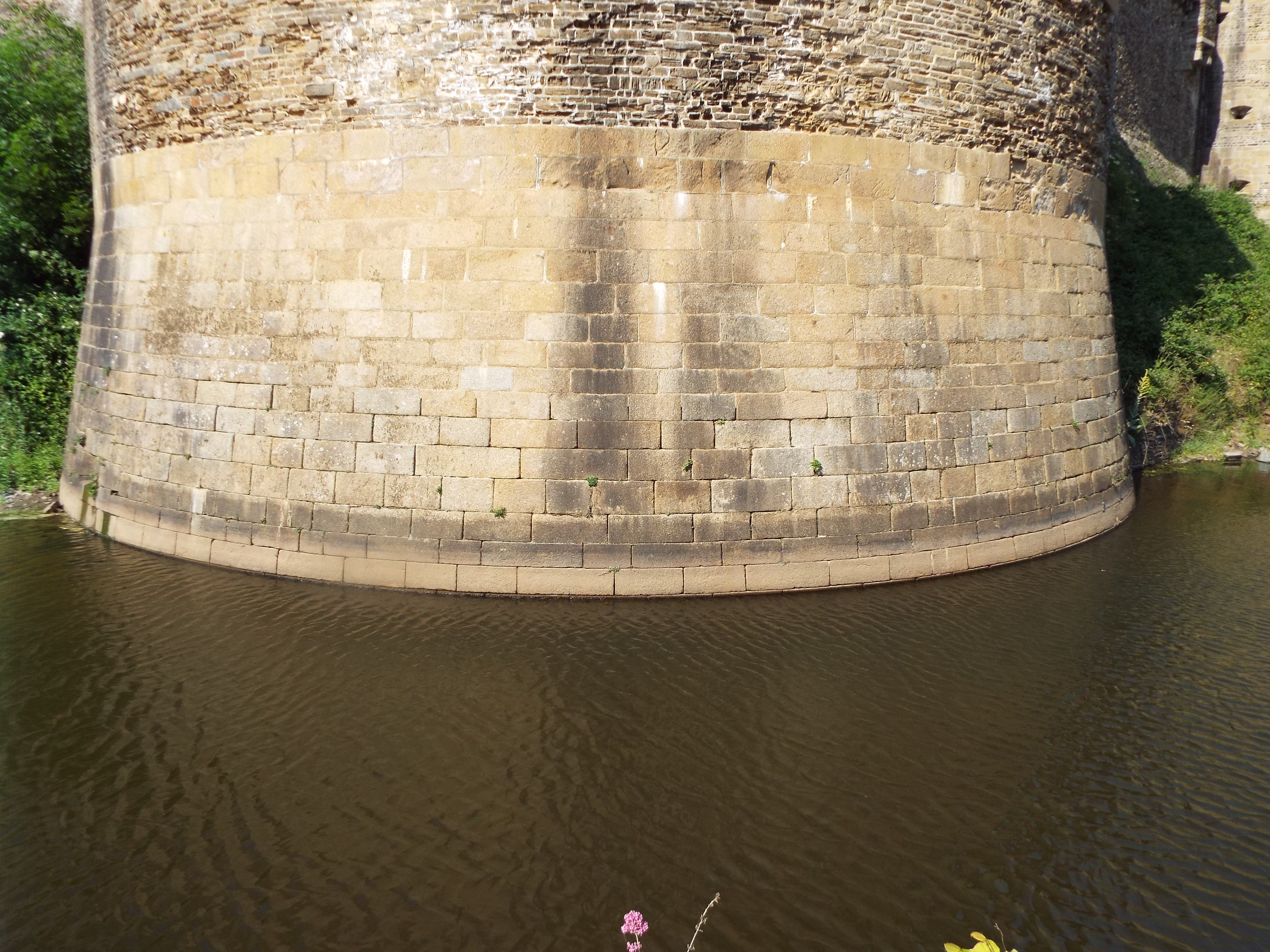 They are parallel to the water. So of course the rows of stone are level as well. Therefore the entire castle is level. Plumb, level, and square, as they say. |